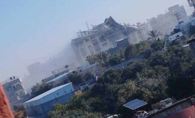 طائرات الاحتلال تقصف الطابق الأخير من برج الصالحي 3 شمالي النصيرات
