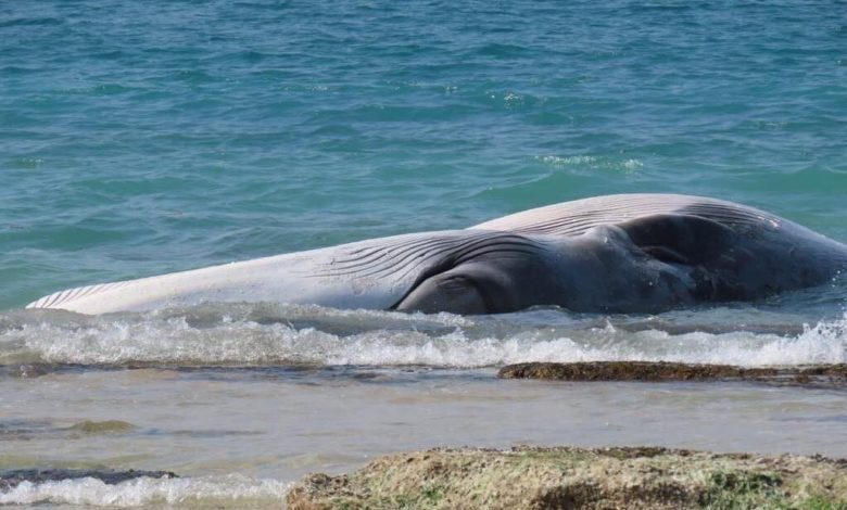 شاهد: البحر يلفظ حوتاً على شاطئ أسدود