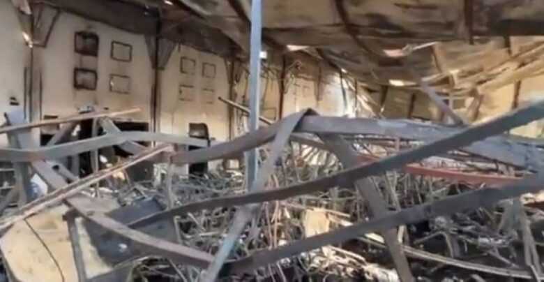 شاهد : مقطع يوثق حجم الأضرار الذي خلفه حريق قاعة الأفراح بالعراق