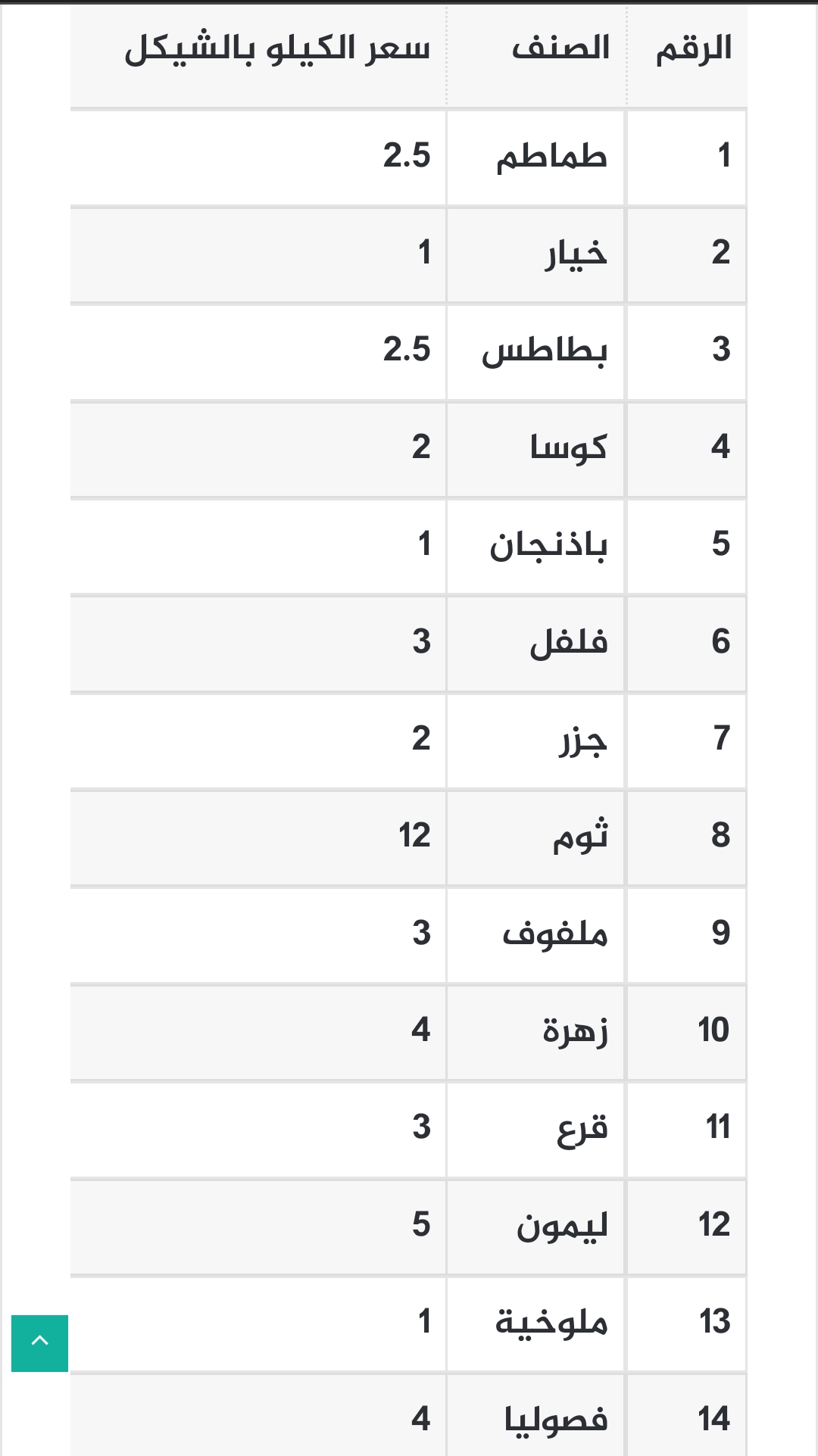 جاءت قائمة أسعار الخضروات والدجاج واللحوم في أسواق غزة اليوم الجمعة عالنحو الآتي: