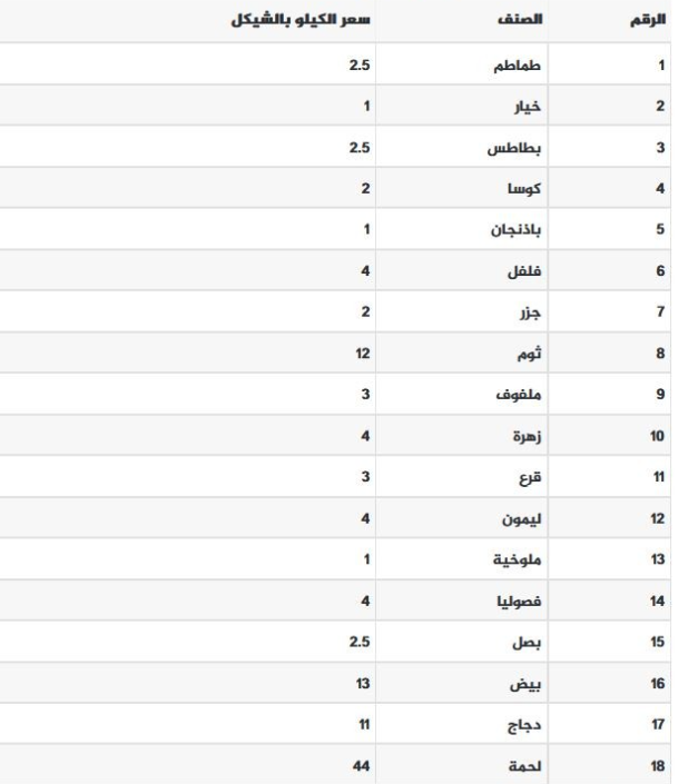 جاءت قائمة أسعار الخضروات والدجاج واللحوم في أسواق غزة اليوم الخميس 6 يوليو 2023: