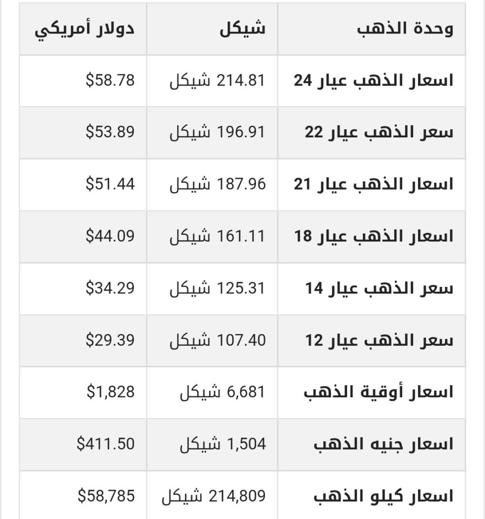 جاءت أسعار الذهب في أسواق فلسطين، اليوم الأربعاء 1 مارس 2023، وفقًا للشيكل “الإسرائيلي” والدولار الأمريكي، على النحو التالي:-