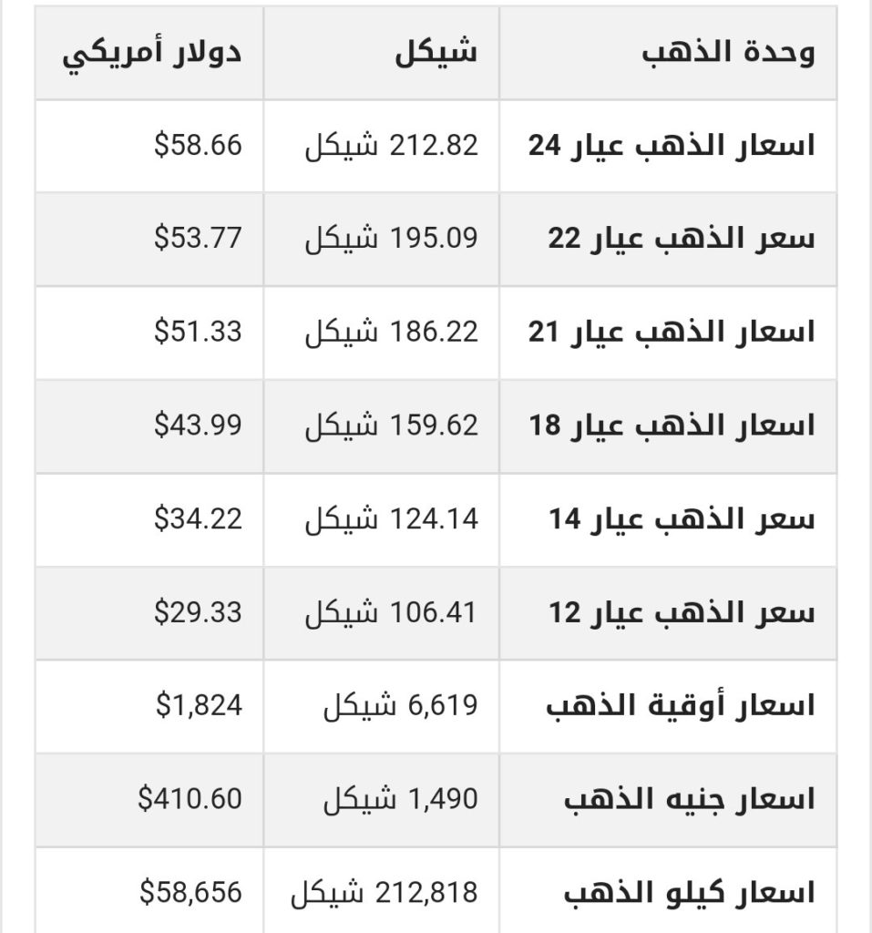 وجاءت أسعار الذهب في فلسطين،عالنحو الآتي: