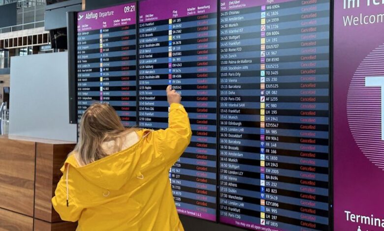 وطلبت إدارة مطار برلين من الركاب الاتصال بشركات الطيران الخاصة بهم لمعرفة الوضع الحالي لرحلتهم.