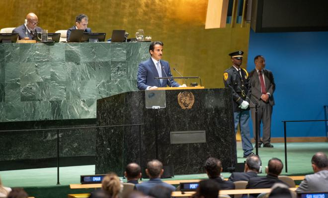 وقد استضافت بلادي في مارس الماضي من هذا العام مؤتمر الأمم المتحدة الخامس المعني بأقل البلدان نموا والذي يعد من أبرز المحافل الدولية. وقد حشدت فيه الجهود لتحقيق الغايات الطموحة لبرنامج عمل الدوحة لصالح أقل البلدان نموا للعقد 2022 – 2031. وإذ نؤكد أن دولة قطر هي شريك رئيسي وفاعل في المساعي الرامية للاستجابة لأولويات واحتياجات هذه الدول، فإننا نرحب بقمة أهداف التنمية المستدامة التي عقدت يوم أمس. ويسعدنا قيام دولة قطر مرة أخرى بدور ريادي في المناقشات الرئيسية تحت مظلة الأمم المتحدة، وآخرها العمل مع إيرلندا على تيسير المفاوضات الحكومية حول الإعلان السياسي الذي اعتمدته قمة أهداف التنمية المستدامة بالأمس.