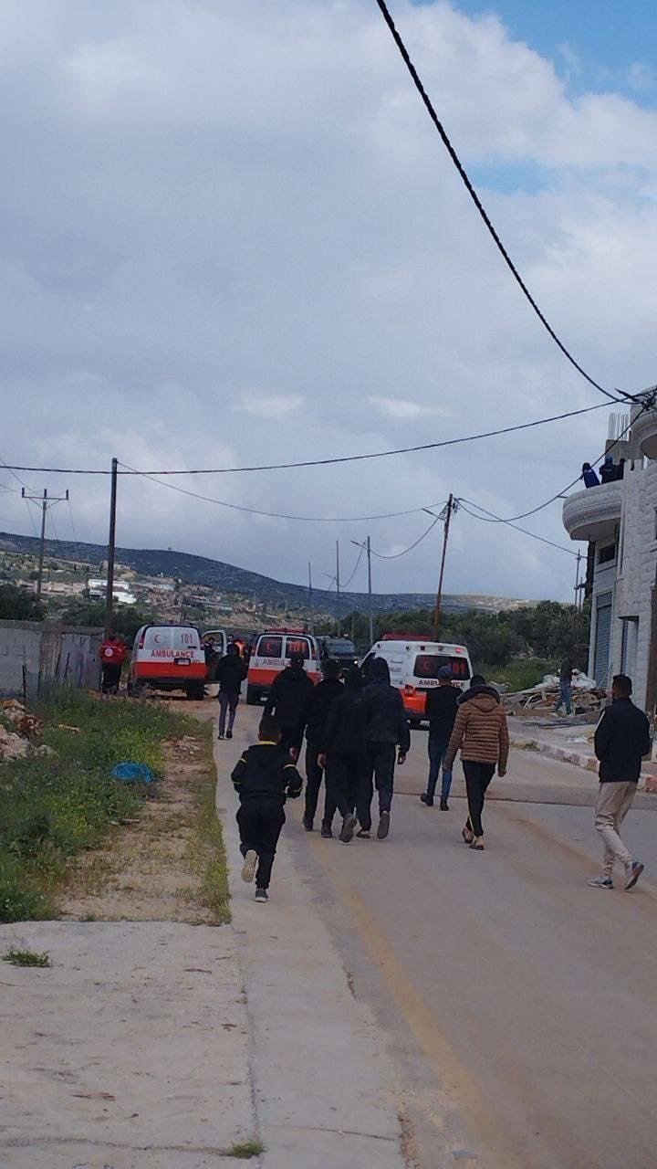 وأفاد مدير الإسعاف والطوارئ بالهلال الأحمر في نابلس أحمد جبريل، بأن الطواقم نقلت شابا مصابا في كتفه بالرصاص الحي وشظية إلى مستشفى رفيديا الحكومي.