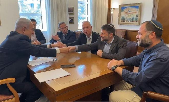وقع رئيس الوزراء الإسرائيلي بنيامين نتنياهو وثيقة تفاهم على الصلاحيات بين وزير الأمن الإسرائيلي يوآف غالانت، ووزير المالية بتسلئيل سموتريتش.