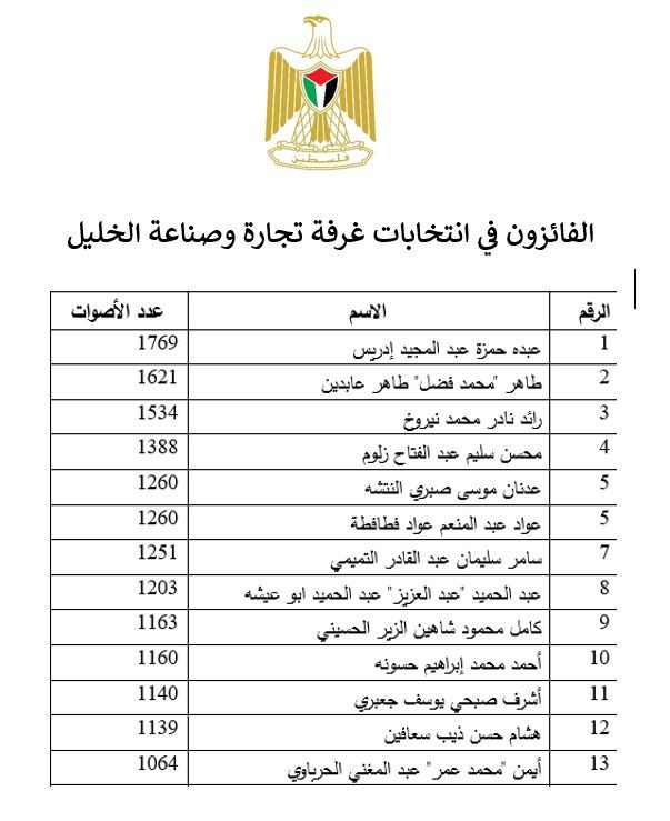 إعلان أسماء الفائزين في انتخابات غرفة تجارة وصناعة الخليل