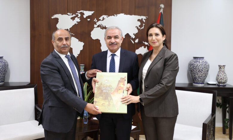 تسلم رئيس الوزراء محمد اشتية، اليوم الثلاثاء في مكتبه برام الله، نسخة من الأطلس الإحصائي الزراعي لفلسطين 2021، من قبل وزير الزراعة رياض العطاري، ورئيس الجهاز المركزي للإحصاء الفلسطيني علا عوض، وهو مشروع مشترك بين المؤسستين.