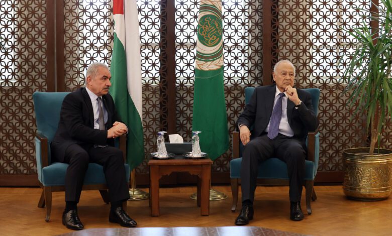 اشتية يلتقي الأمين العام للجامعة العربية ويبحث معه إعادة إحياء مبادرة السلام العربية