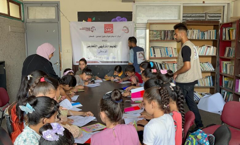 افتتح مركز الديمقراطية وحقوق العاملين في فلسطين، بالتعاون مع جمعية مركز البرامج النسائية المغازي اليوم الأحد، فعاليات المخيم التعليمي الترفيهي للأطفال في مخيم المغازي، وذلك ضمن جهوده للتخفيف من الضغوط النفسية التي يتعرض لها الأطفال في المخيم نتيجة استمرار الحرب في قطاع غزة والانقطاع الطويل للعملية التعليمية.