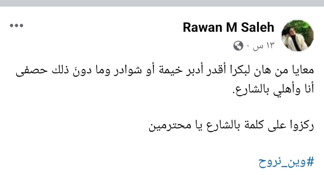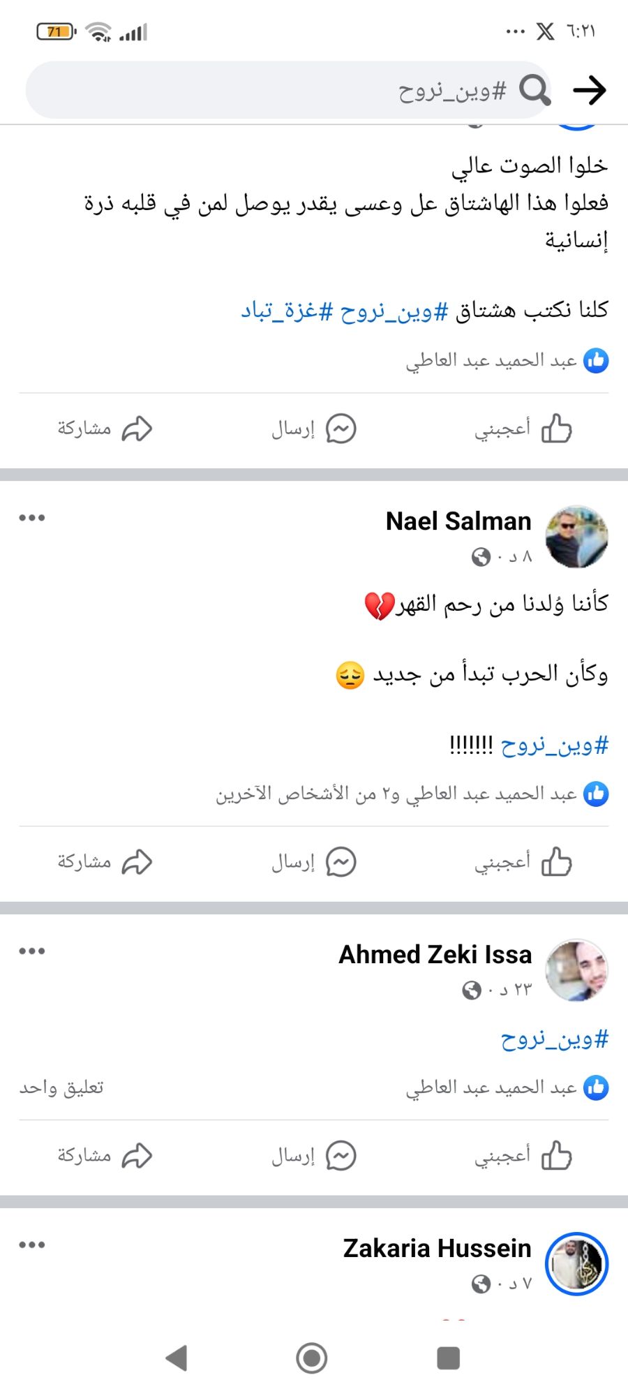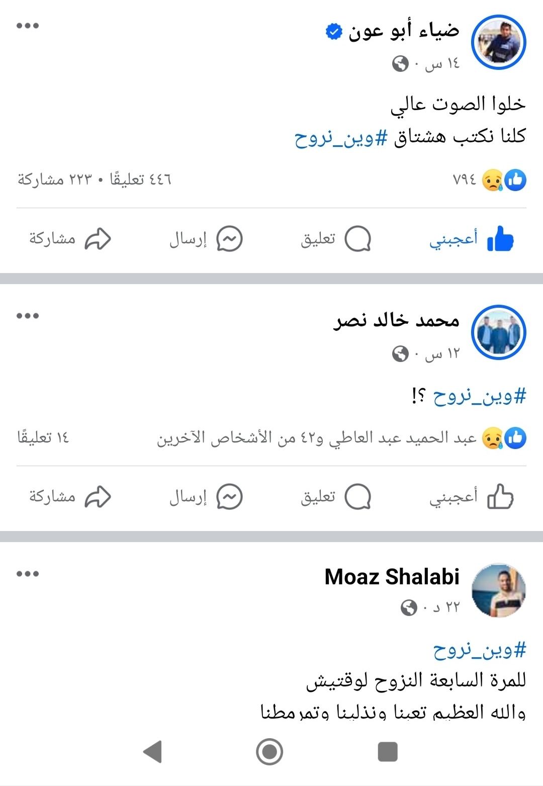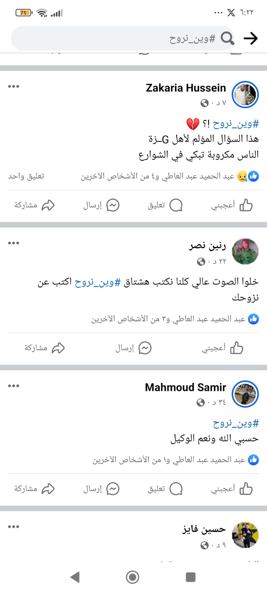 وكتب الإعلامي عبد الحميد عبد العاطي عبر حسابه الشخصي على فيسبوك: “اطلاق هشتاق #وين_نروح رسالة للعالم لقادتنا، اكتب عن نزوحك عن معاناتك”.