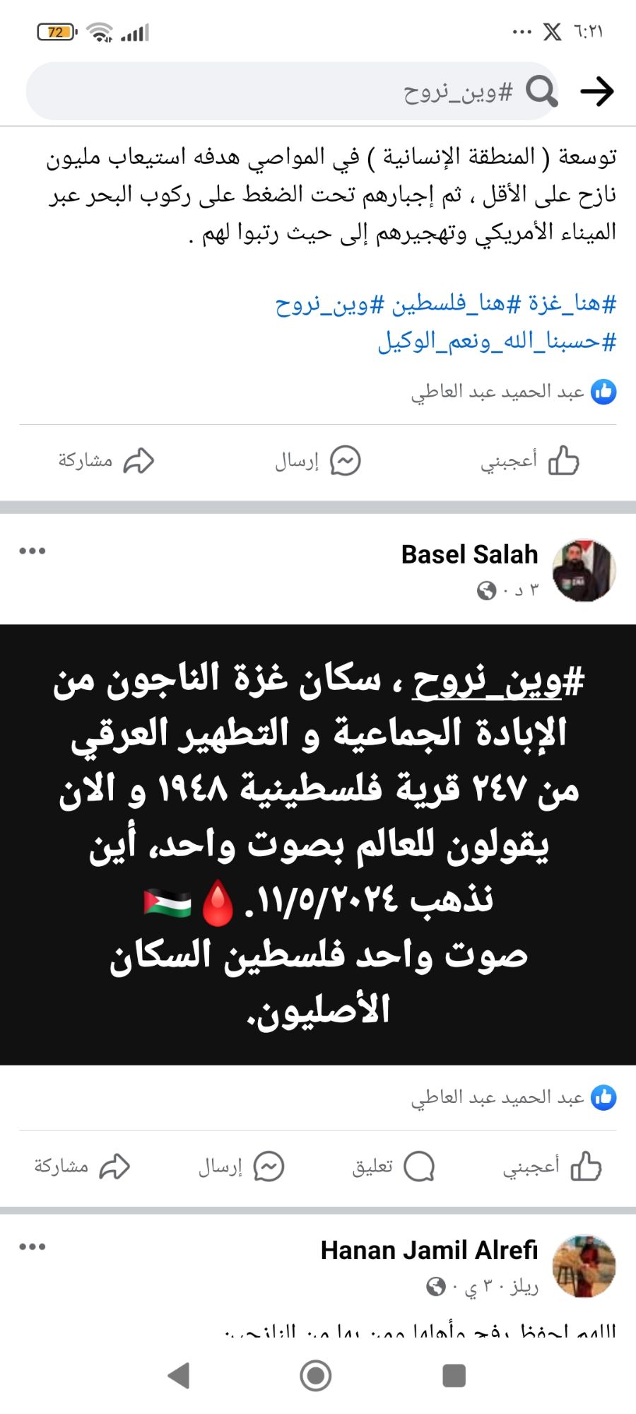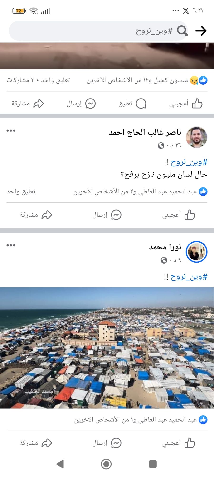 بالصور .. تفاعل واسع مع هاشتاغ #وين_نروح لتسليط الضوء على معاناة النازحين في قطاع غزة