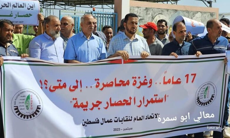 نظم الاتحاد العام لنقابات عمال فلسطين اليوم الخميس، اعتصامًا أمام حاجز بيت حانون -إيرز شمال القطاع .