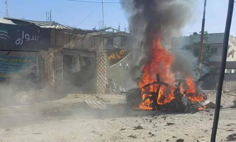 وأظهرت مقاطع فيديو تداولها ناشطون مشاهد لمركبة تشتعل بالنيران وآثار دماء على الأرض، مما يعكس حجم الدمار الذي خلفه القصف.