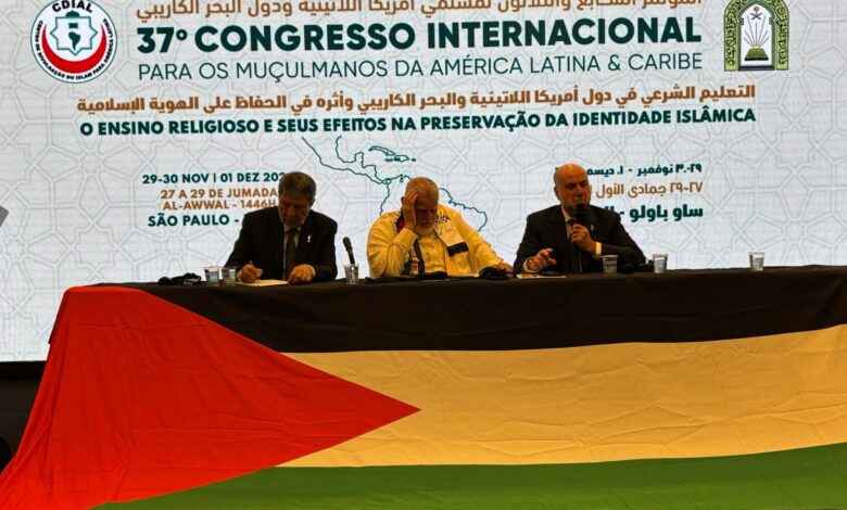 نظم في مدينة ساو باولو البرازيلية، ندوة حول القضية الفلسطينية تحت عنوان “ندوة القدس”، كما أقيم معرض صور فوتوغرافي وعرض فيديو وثائقي يوثق الجرائم الإسرائيلية وحرب الإبادة والتطهير العرقي التي تنفذها دولة الاحتلال بحق شعبنا في قطاع غزة والضفة الغربية بما فيها القدس المحتلة، بمشاركة وفود عربية وإسلامية ورجال الفكر والسياسة ورجال الدين من مختلف أنحاء العالم الإسلامي.