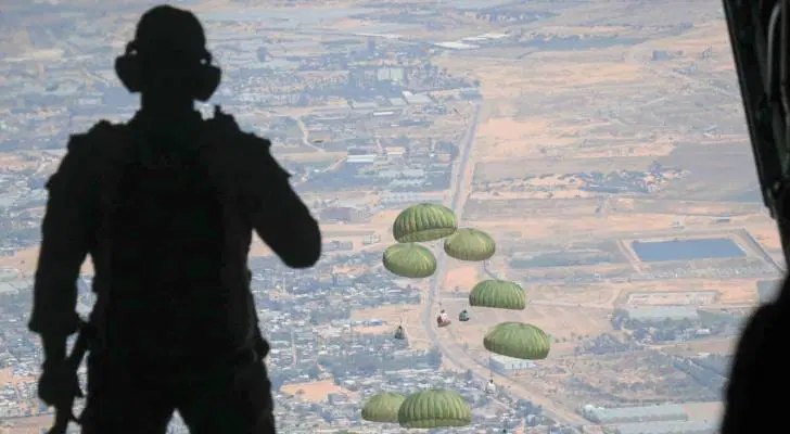 وأوضح أن عملية الإسقاط ستُنفذ بالتعاون مع منظمات دولية، وسيتم إسقاط سبع حاويات مساعدات تحتوي على طحين وسكر ومعلبات غذائية.