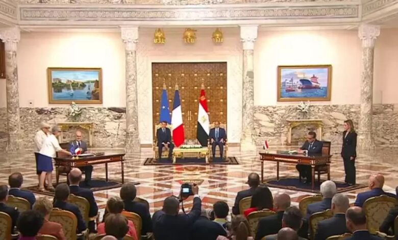 جاء ذلك خلال مؤتمر صحفي مشترك مع الرئيس الفرنسي إيمانويل ماكرون، بقصر الاتحادية بالقاهرة.