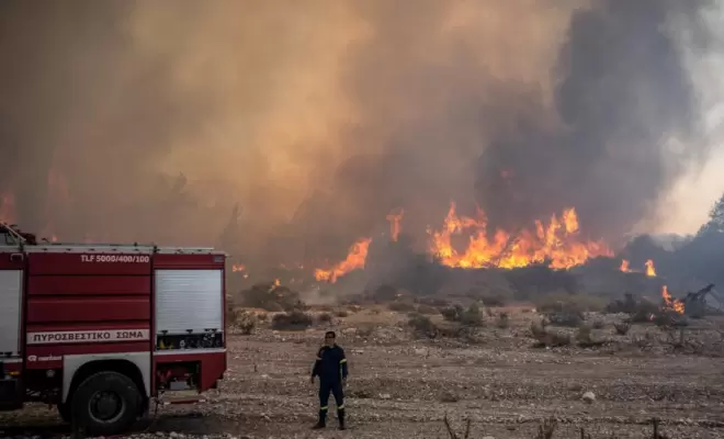 وتواصل النيران تمدّدها في شمال شرق اليونان وفي جزيرتي إيفيا وكيثنوس وفي منطقة بويتيا (شمال العاصمة)، تؤججها رياح قوية وحرارة تلامس 41 درجة.