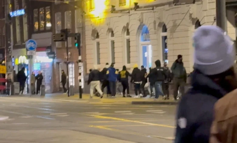 وبدأ الشجار، عندما قام مشجعو النادي الإسرائيلي “مكابي تل أبيب” وهم عدة آلاف، بينهم جنود، بتنظيم مسيرات استفزازية في المدينة الهولندية، والتي استمرت حتى الصباح بحسب مراسل الميادين.