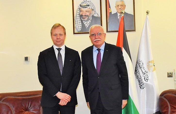 أطلع وزير الخارجية والمغتربين رياض المالكي، مبعوث الاتحاد الأوروبي لعملية السلام في الشرق الأوسط سفين كوبمانس، على آخر التطورات السياسية على الساحة الفلسطينية.