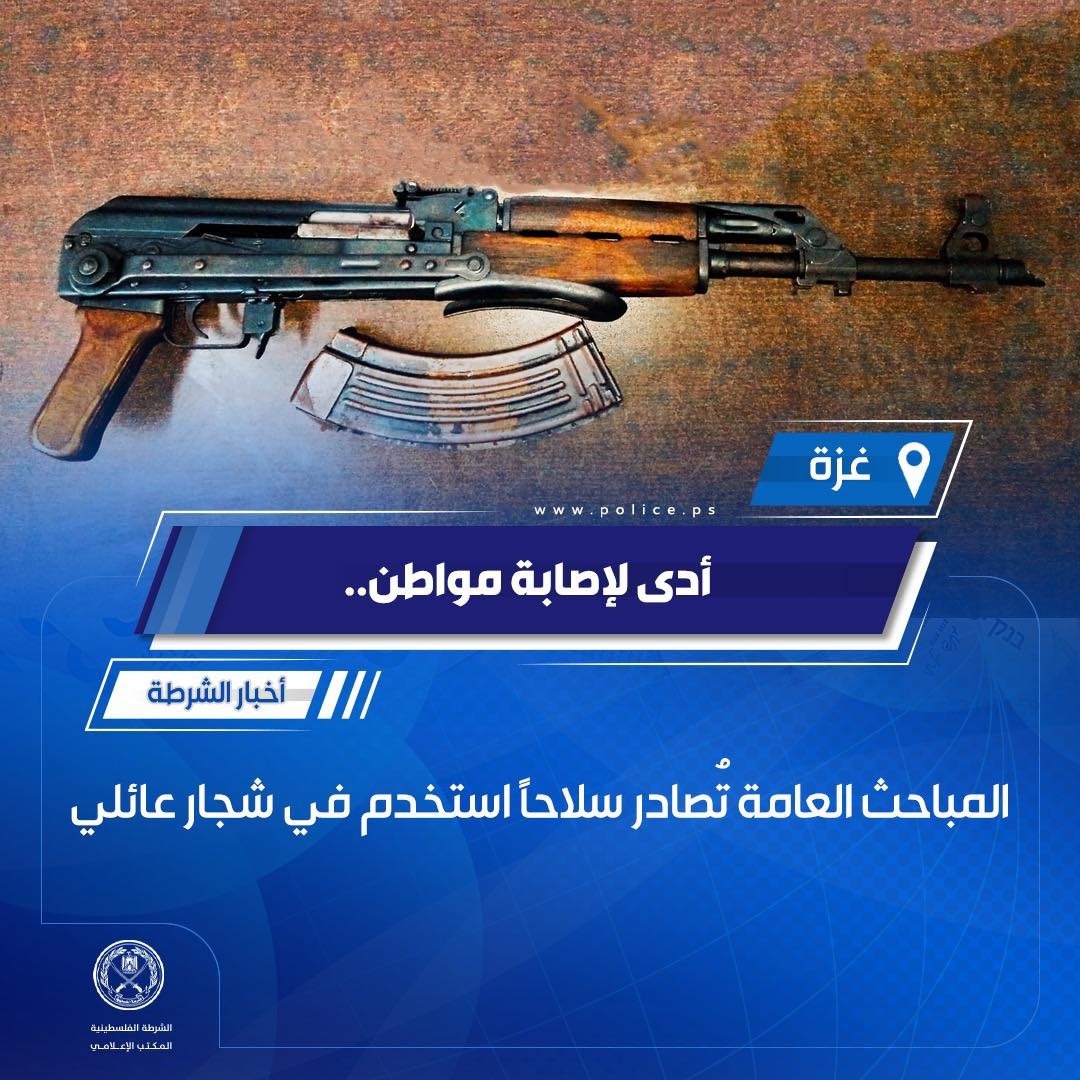 أعلن جهاز الشرطة في قطاع غزة ، اليوم الأحد 4 يونيو 2023، عن مصادرة مباحث محافظة غزة قسم الشجاعية، سلاحًا ناريًا استخدم في شجار عائلي بحي الشجاعية شرق مدينة غزة.