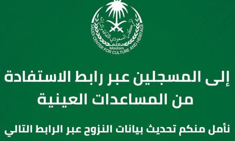 المركز السعودي للثقافة والتراث يدعو المستفيدين من المساعدات العينية لتحديث بياناتهم