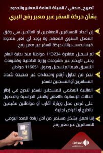 تعقيبا على محاولات تضليل الرأي العام بشأن حركة السفر عبر معبر رفح البري؛ نؤكد على ما يلي: