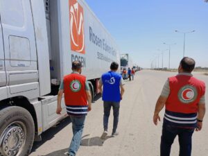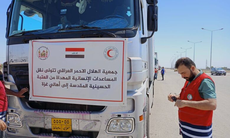 اعلنت جمعية الهلال الأحمر العراقي، في بيان لها، عن إرسال قافلة مساعدات إنسانية ضخمة إلى سكان قطاع غزة عن طريق البر عبر معبر رفح.