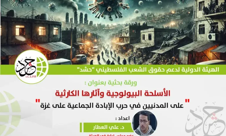 الهيئة الدولية “حشد” تُصدر ورقة بحثية حول الأسلحة البيولوجية وآثارها الكارثية على المدنيين في غزة
