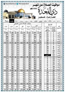 امساكية شهر ذي القعدة 2023 – 1444هـ في غزة فلسطين – مواعيد الصلاة