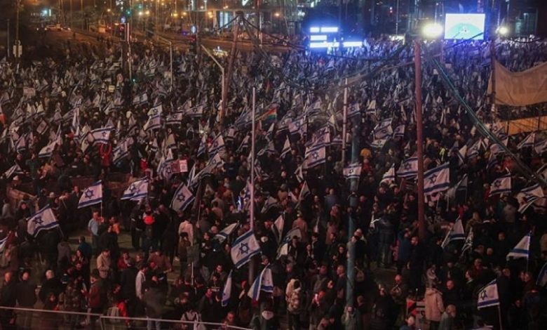 ونظمت مظاهرات احتجاجية أخرى ضد حكومة نتنياهو في عدة مناطق أخرى، وأغلقت شرطة الاحتلال العديد من الشوارع تزامنا مع المظاهرات. وبالإضافة إلى رفض ما يطلق عليه “الإصلاح القضائي”، يطالب المتظاهرون باستقالة نتنياهو بسبب ملاحقته في قضايا فساد.