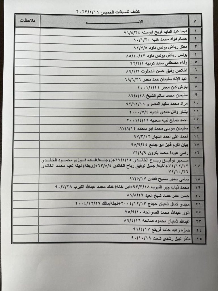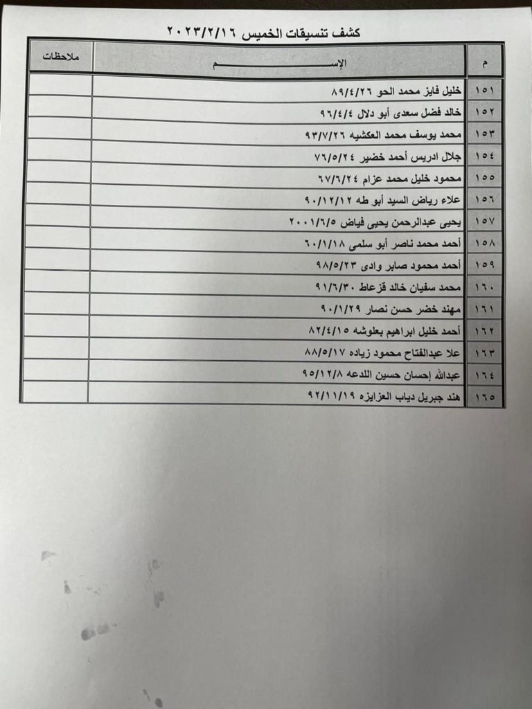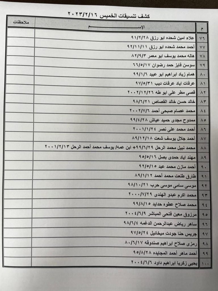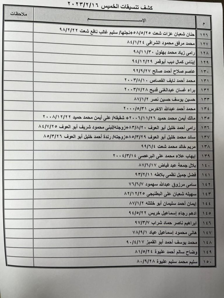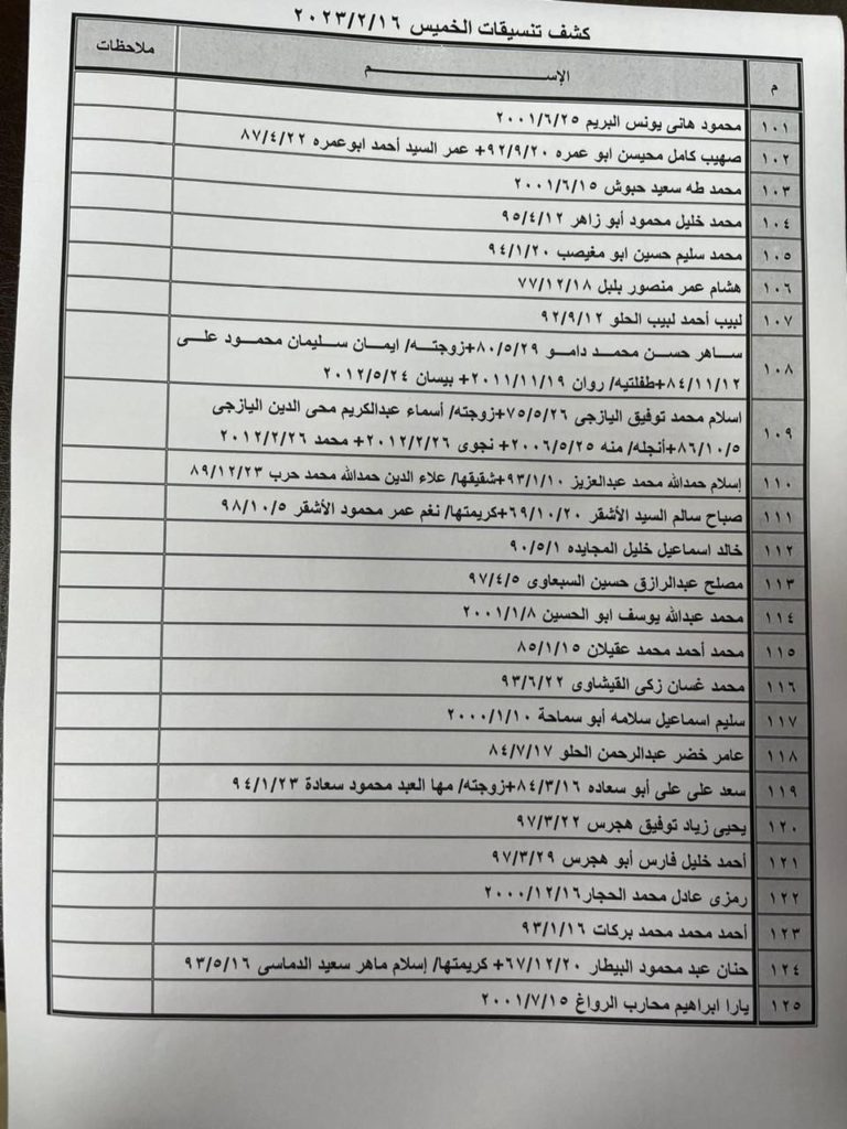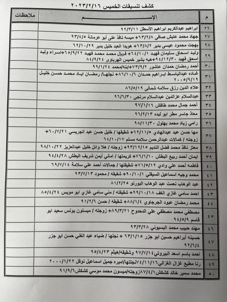 تعلن الهيئة العامة للمعابر والحدود بوزارة الداخلية والأمن الوطني عن وصول كشف “تنسيقات مصرية” للسفر عبر معبر رفح البري يوم الخميس (16 فبراير)، والذين عليهم التواجد س 7:00 صباحاً في الصالة الخارجية للمعبر لتسهيل سفرهم.