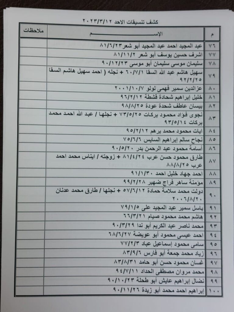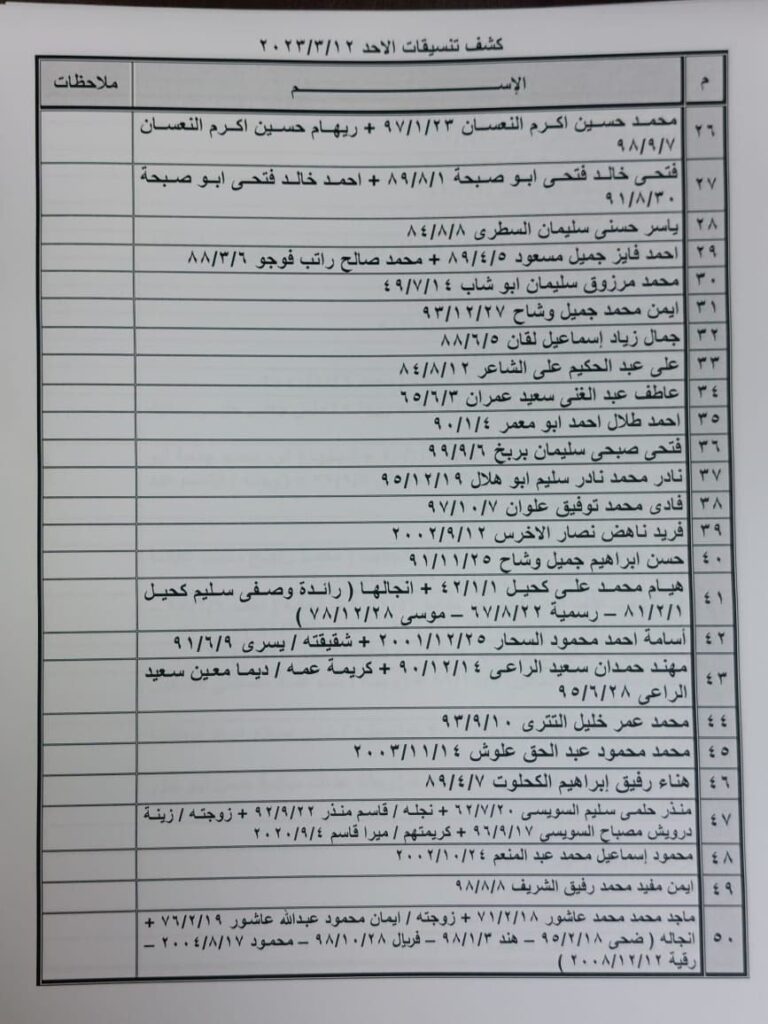 “بالأسماء”كشف تنسيقات مصرية للسفر عبر معبر رفح يوم الأحد 12 مارس 2023