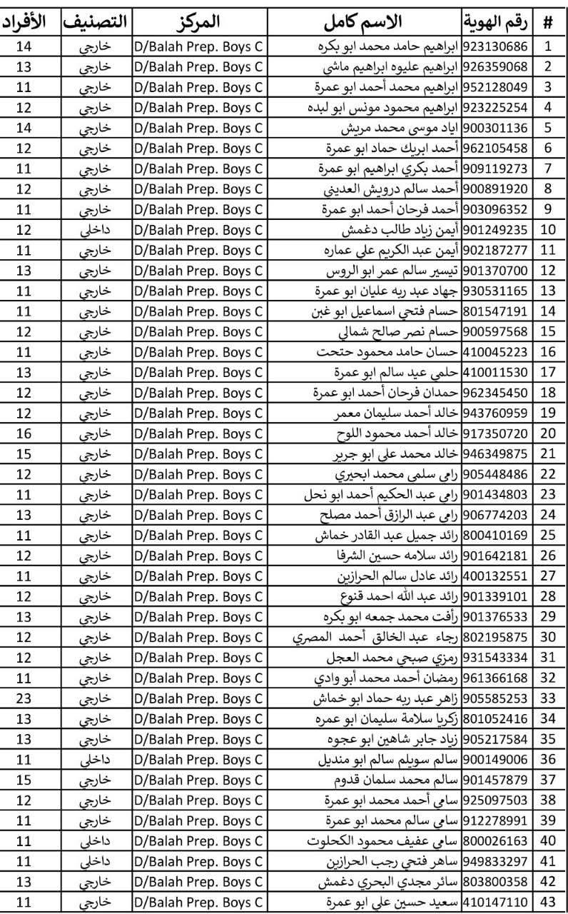 ملاحظة هامة: هذه كشوفات لمركز إيواء دير البلح، وسوف ننشر تباعا باقي الكشوفات حال وصولها.