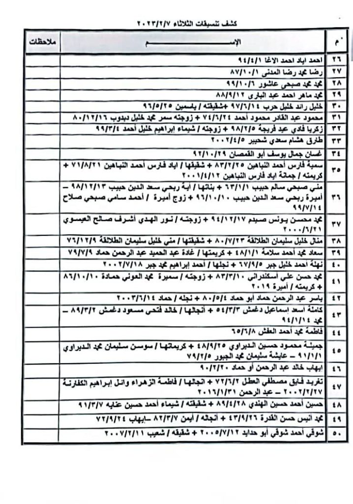 نشرت وزارة الداخلية في غزة ، مساء اليوم الأحد 5 فبراير 2023، كشف “تنسيقات مصرية” للسفر عبر معبر رفح يوم الثلاثاء 7 فبراير.