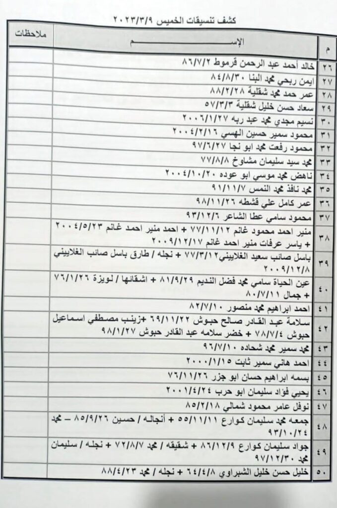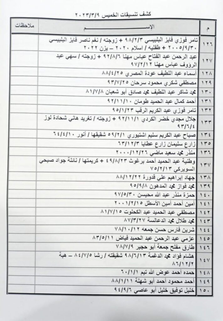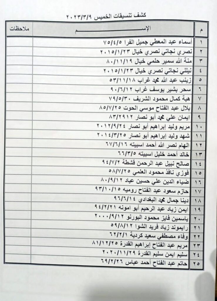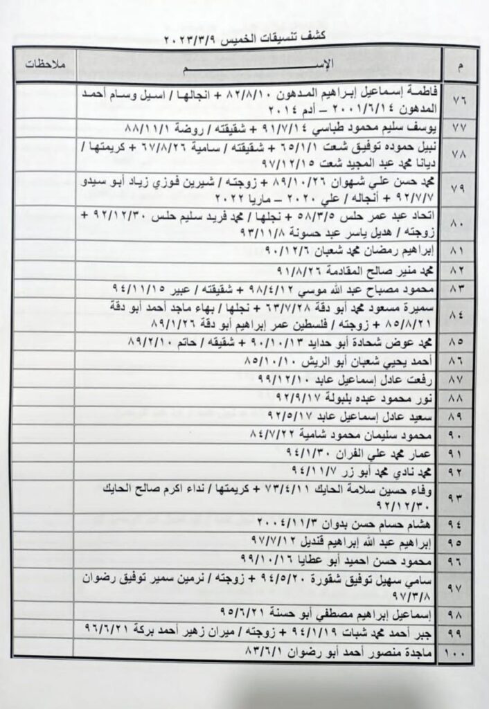 تعلن الهيئة العامة للمعابر والحدود بوزارة الداخلية والأمن الوطني عن وصول كشف “تنسيقات مصرية” للسفر عبر معبر رفح البري يوم الخميس (9 مارس)، والذين عليهم التواجد س 7:00 صباحاً في الصالة الخارجية للمعبر لتسهيل سفرهم.