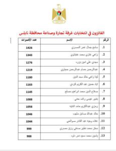 بالأسماء نتائج انتخابات غرفة تجارة وصناعة محافظة نابلس