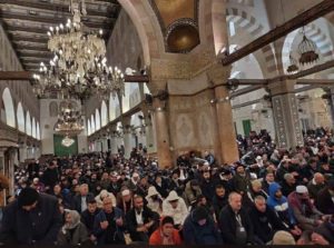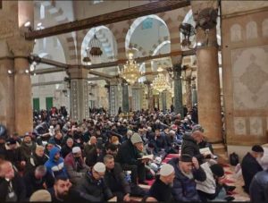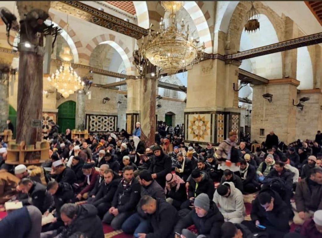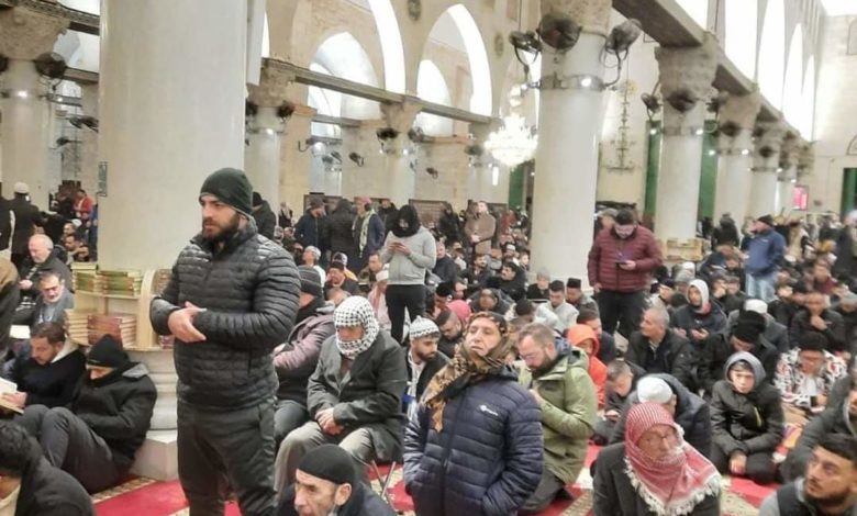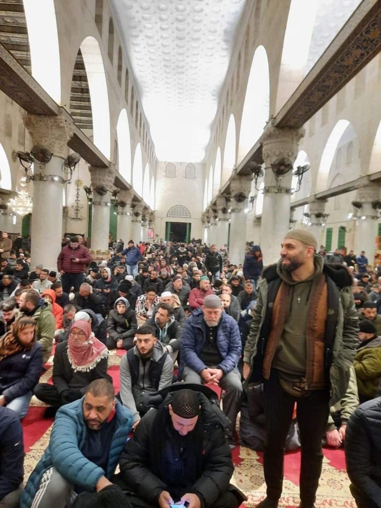 وبالرغم من حالة البرد الشديد إلا أنه تواجد في المسجد الأقصى الآلاف من المواطنين الذين شدوا الرحال إليه منذ مساء أمس وساعات مبكرة من فجر اليوم.