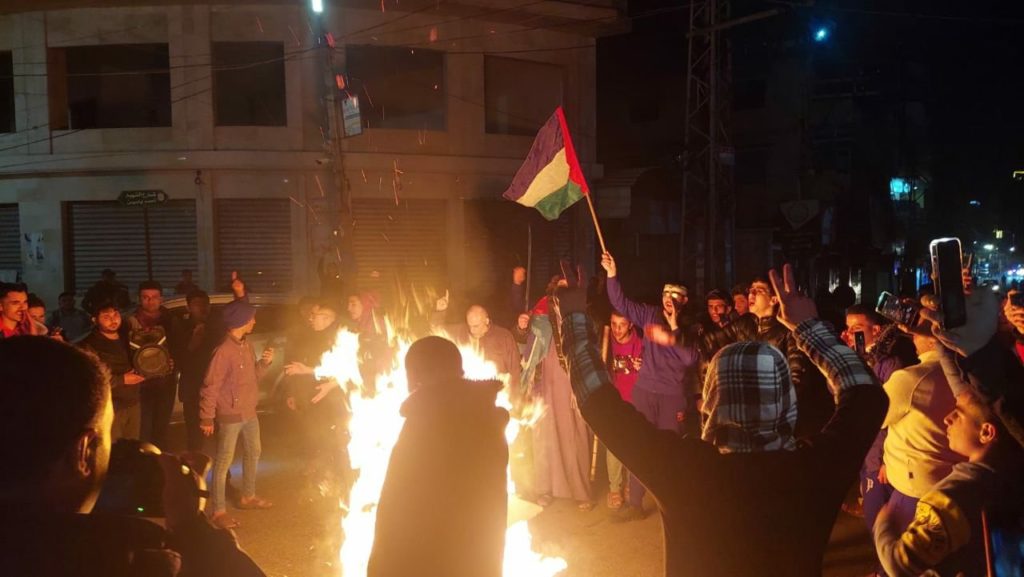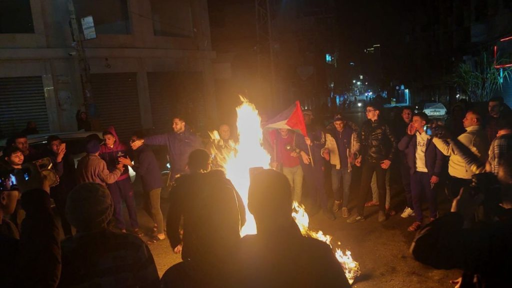 وأكدت مصادر محلية، أن الشباب الثائر بدء في احراق الإطارات المطاطية قرب الشريط الحدودي وذلك تعبيرا عن حالة الغضب الشعبي التي سادت عقب هجوم المستوطنين على بلدات جنوب نابلس.