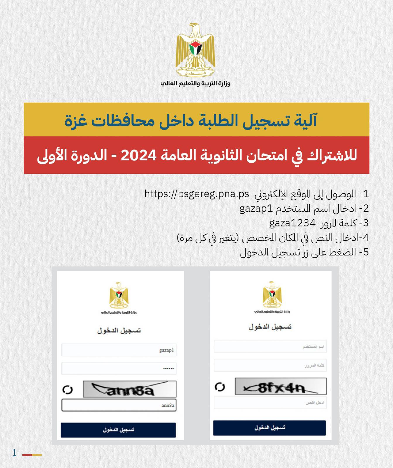 أعلنت وزارة التربية والتعليم العالي في قطاع غزة عن فتح باب التسجيل وتحديث البيانات لطلبة الثانوية العامة (التوجيهي) للعام 2024، من مواليد عام 2006 النظاميين، الذين التحقوا بالصف الثاني عشر بداية العام الدراسي 2023/2024.