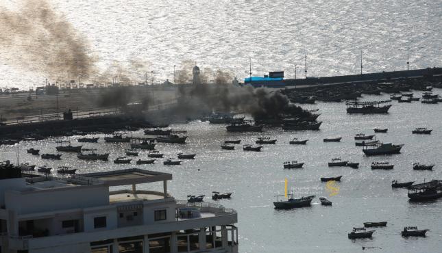 بالصور الزوارق الحربية تقصف ميناء غزة وتدمر مراكب للصيادين