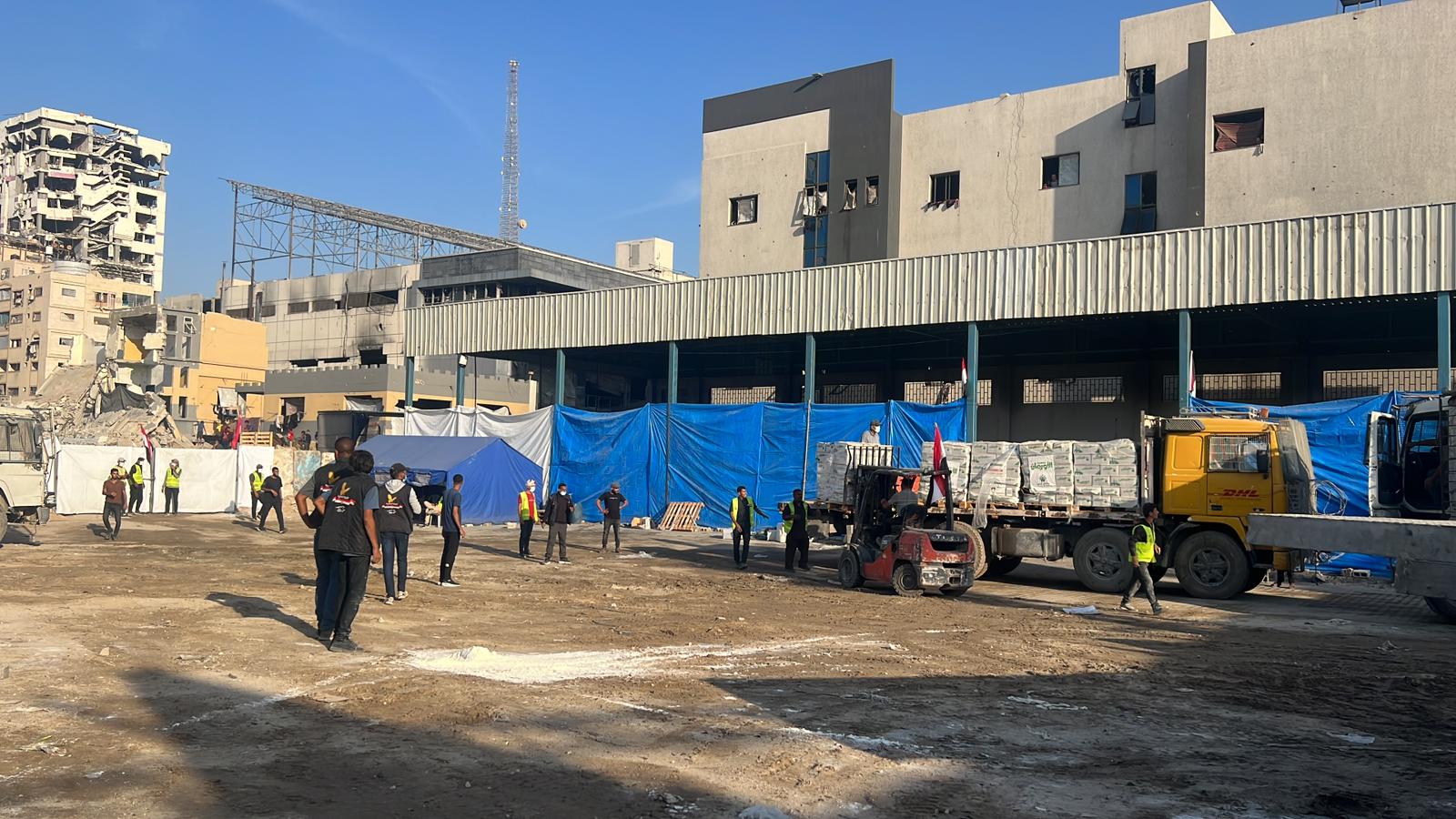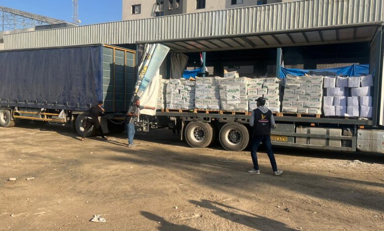 وقال معين أبو الحصين، المدير التنفيذي للجنة في القطاع، إن القافلة تضم عشرات الآلاف من الطرود الغذائية والصحية، إضافة إلى الخيام والحمامات المتنقلة.