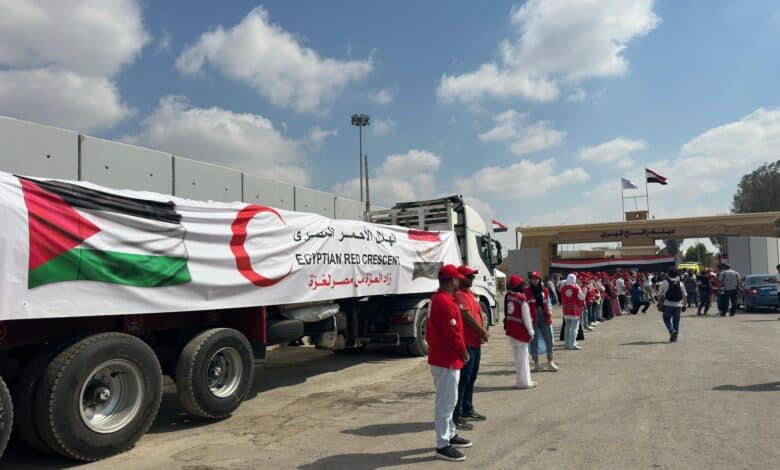 بالصور: الهلال الأحمر المصري يدفع 180 شاحنة تحمل 4400 طن مساعدات إلى غزة