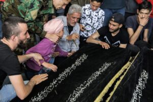 بالصور تشييع جثامين شهداء الجبهة الشعبية القيادة العامة الخمسة في سوريا