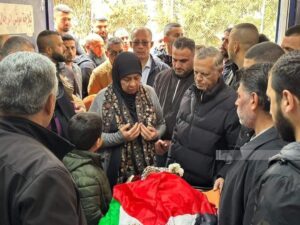 وحمل المشيعون جثمان الشهيد معالي ملفوفا بالعلم الفلسطيني، منددين بجرائم الاحتلال المستمرة بحق شعبنا.