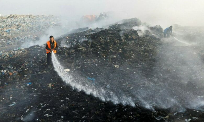 “بالصور” جهود الإطفاء مستمرة منذ الأمس للسيطرة على حريق مكب نفايات “جحر الديك”