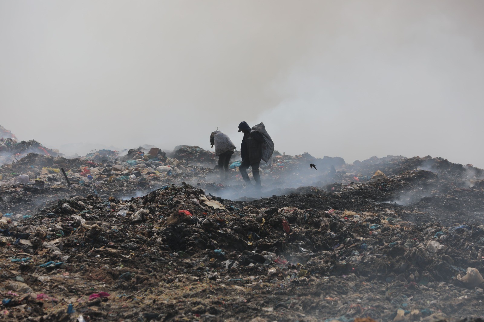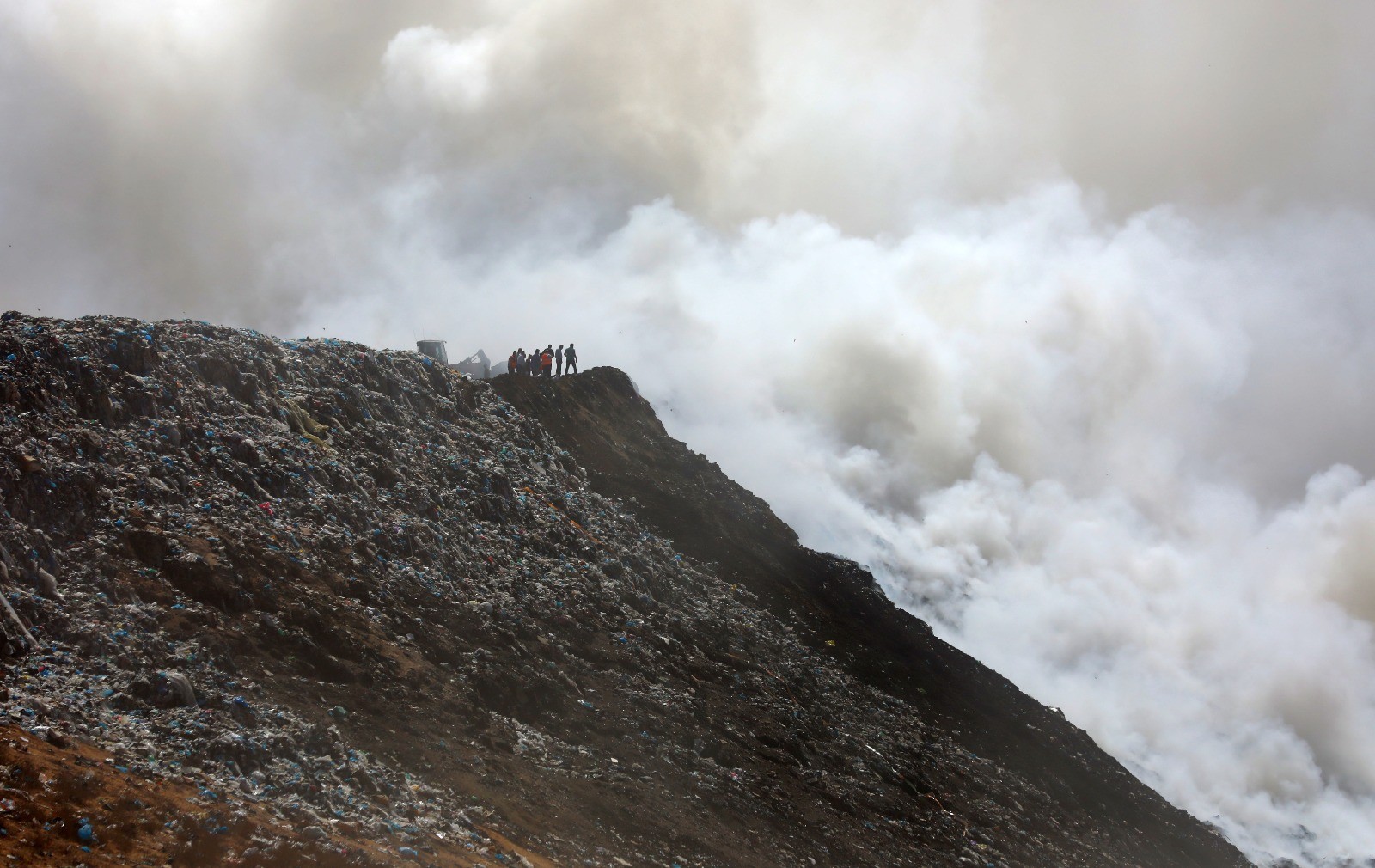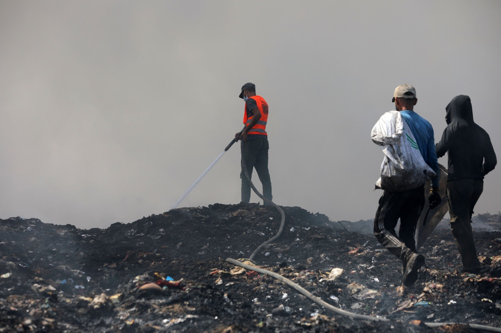 وتجمع مواطنون في المحيط القريب من مكب النفايات، لمساعدة فِرق الإطفاء والدفاع المدني في جهودهم لاحتواء الحريق.