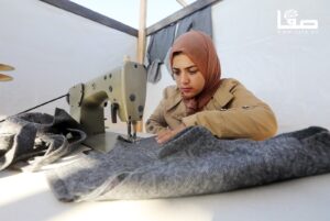 بالصور .. سيدات غزة يبتكرن طريقة للحصول على ملابس دافئة للنازحين