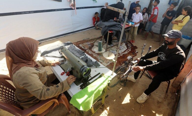 ابتكرت مجموعة من النساء الفلسطينينات في غزة طريقة لتحويل البطانيات والأدثرة إلى ملابس دافئة للنازحين، مع اقتراب فصل الشتاء وقلة الملابس جراء الحرب الإسرائيلية المستمرة على القطاع.